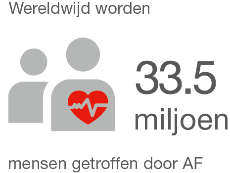 Atriumfibrilleren (AF) is de meest voorkomende langdurige hartritmestoornis die voorkomt bij 5% van de bevolking van 65 jaar en ouder en bij 14% ouder dan 85 jaar. AF leidt tot 5x hoger risico op een beroerte en is verantwoordelijk voor 20% van alle beroertes. Veel mensen hebben geen symptomen van AF en blijven daarom onbehandeld. Vroege detectie van AF, gevolgd door een adequate behandeling, kan het risico op een beroerte met 68% verminderen. [6-8]